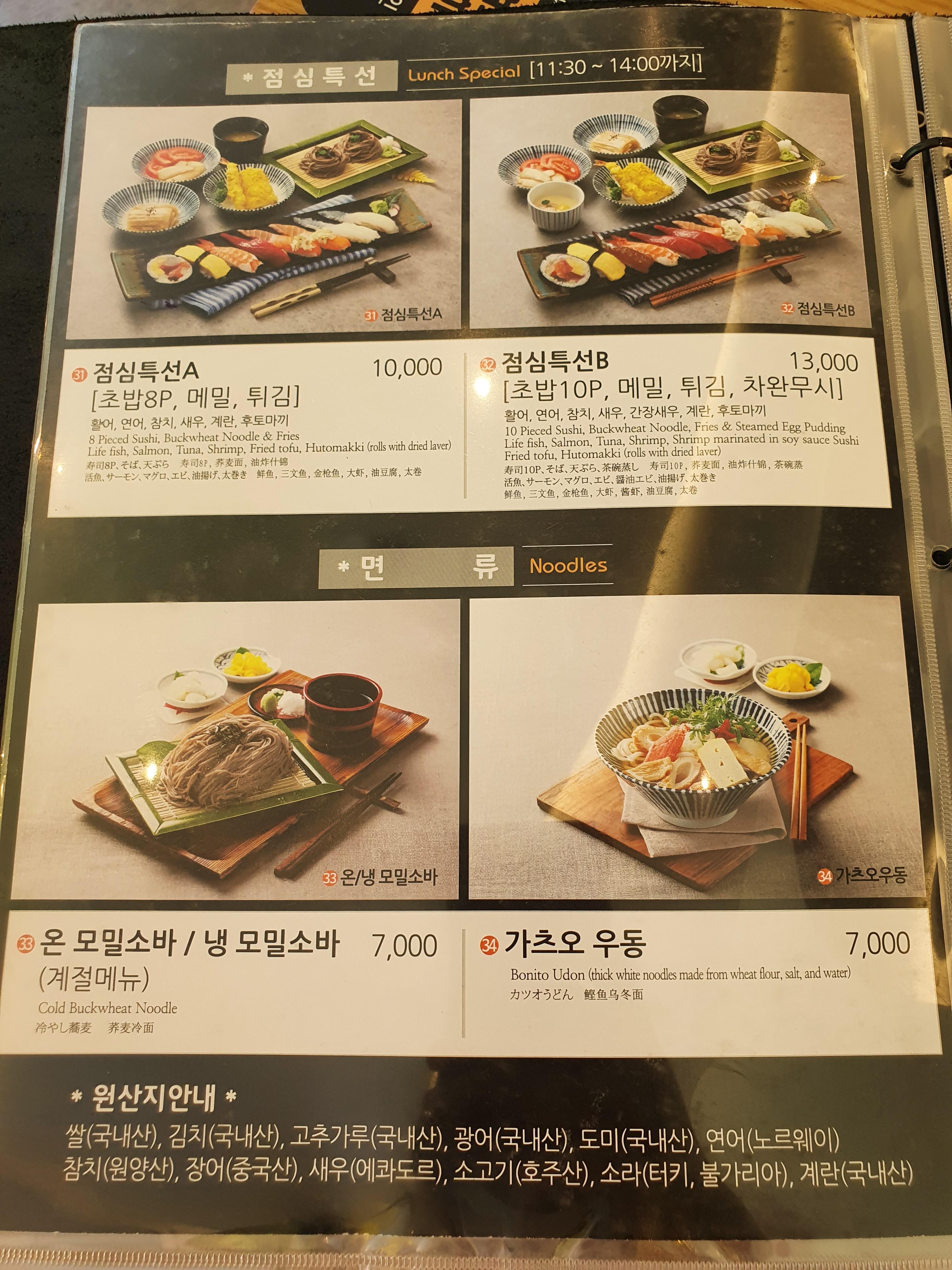 점심특선 B(초밥 10P, 메밀, 튀김, 차완무시)로 주문했는데