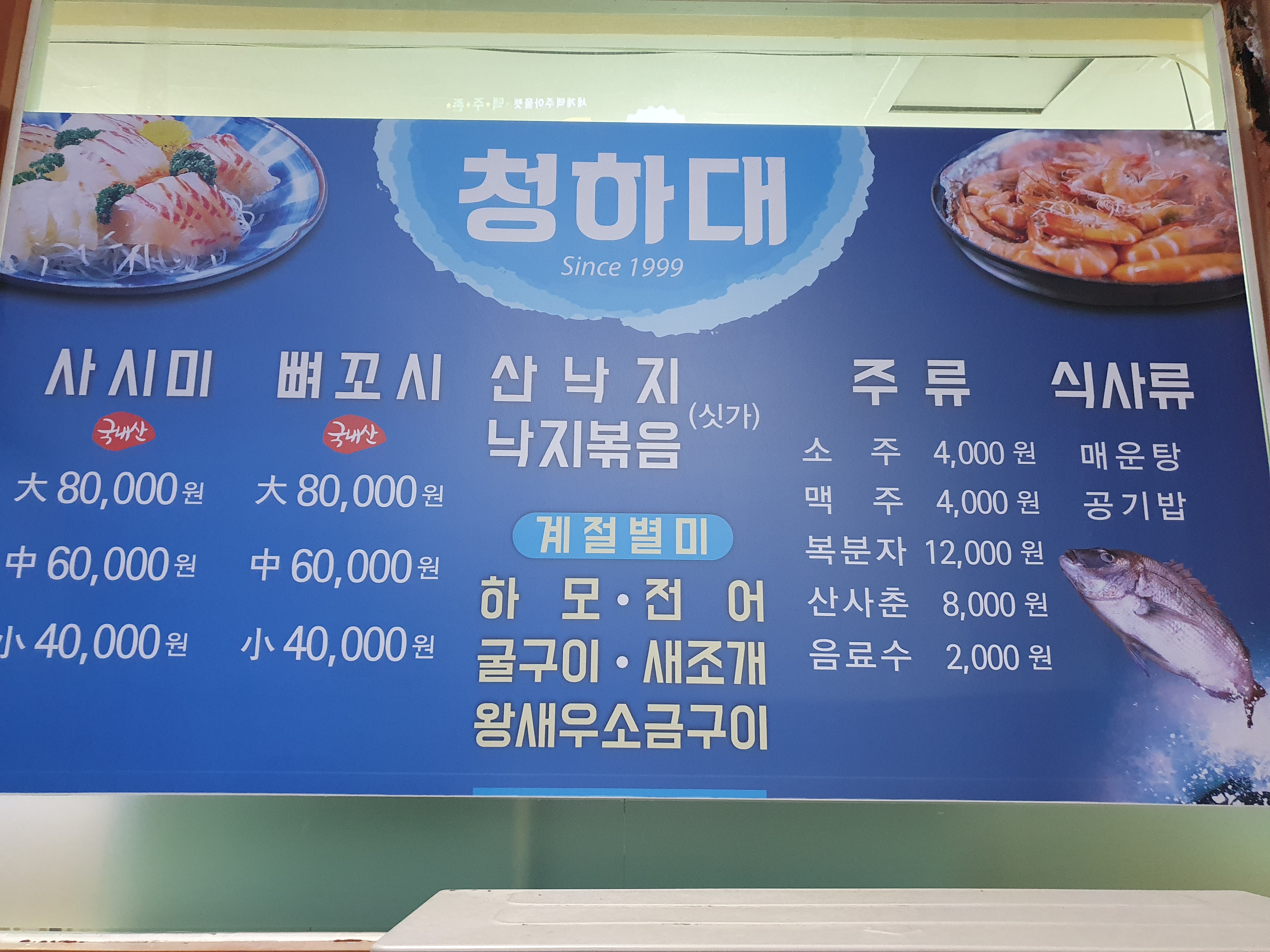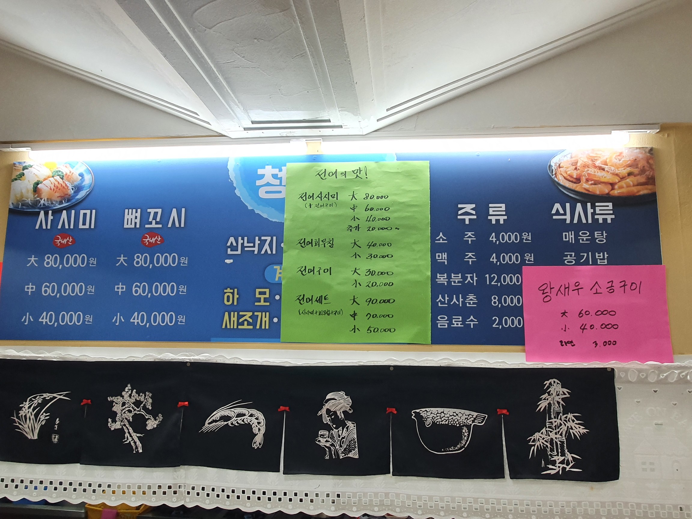 지금은 가을이라 전어랑 새우구이가 인기가 많았어요.