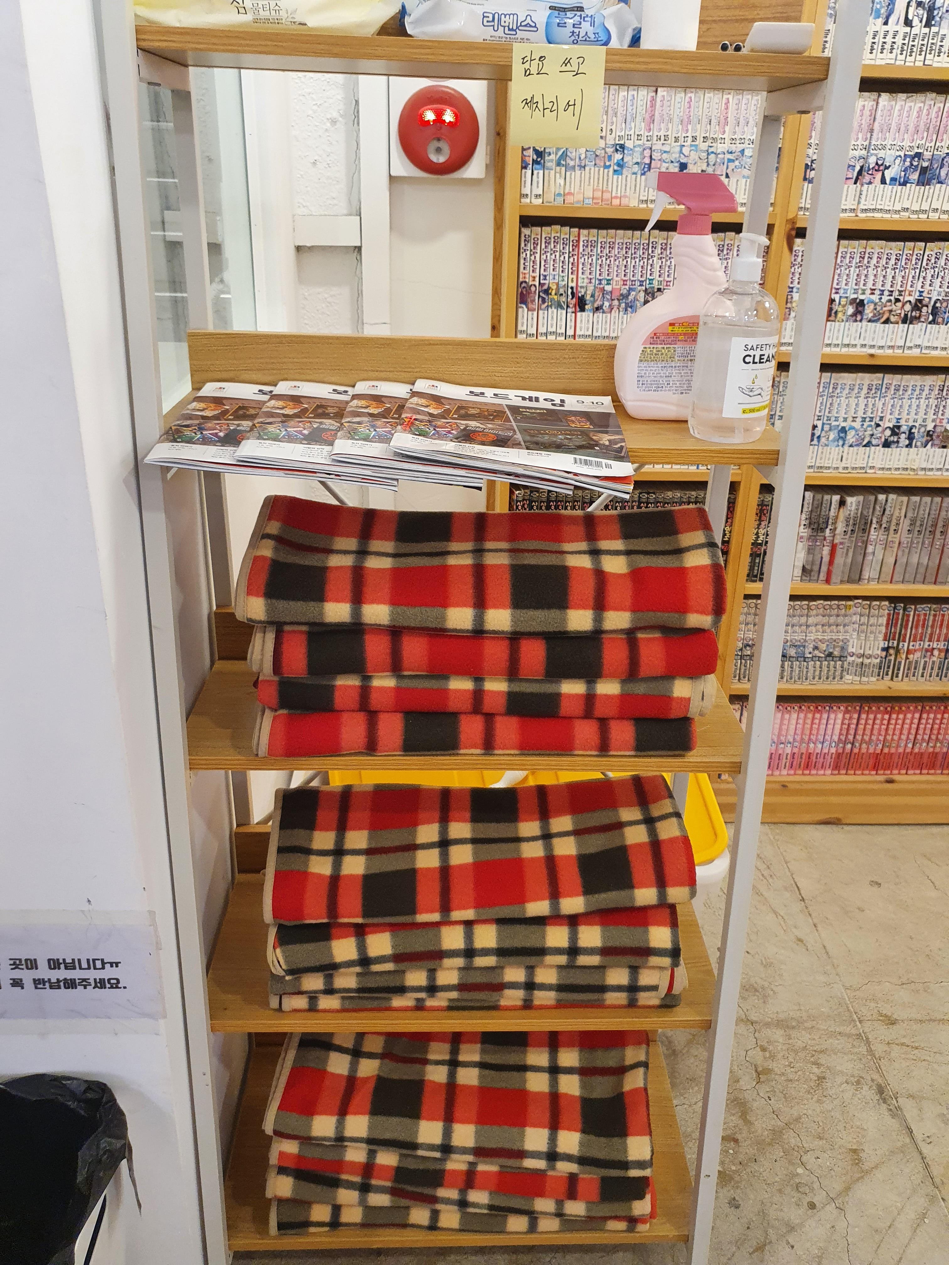 만화책, 오락기, 보드게임, 간식,