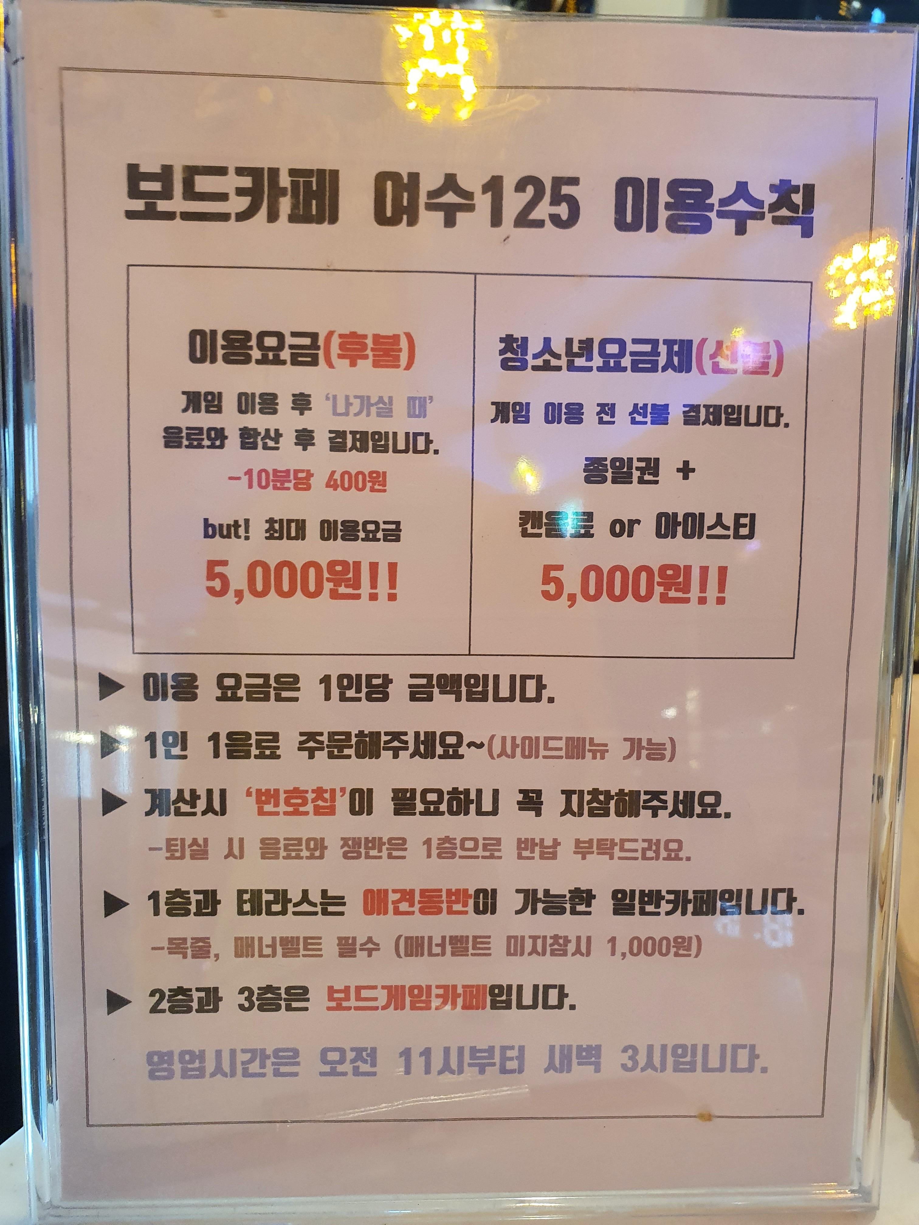 '여수 125'라는 보드게임 카페를 방문했습니다.